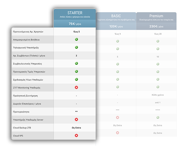 Ειδικές προνομιακές τιμές στις υπηρεσίες που δεν συμπεριλαμβάνονται στην σύμβαση (πχ επίσκεψη μηχανικού στον χώρο, εργασία για εγκατάσταση νέας υποδομής ,παραλαβή μηχανημάτων για επισκευή κτλ).